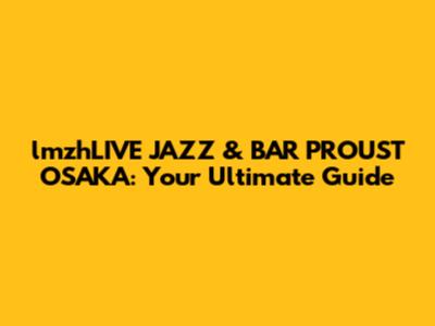 LmzhLIVE JAZZ & BAR PROUST OSAKA: Your Ultimate Guide
