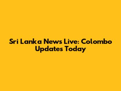 Sri Lanka News Live: Colombo Updates Today